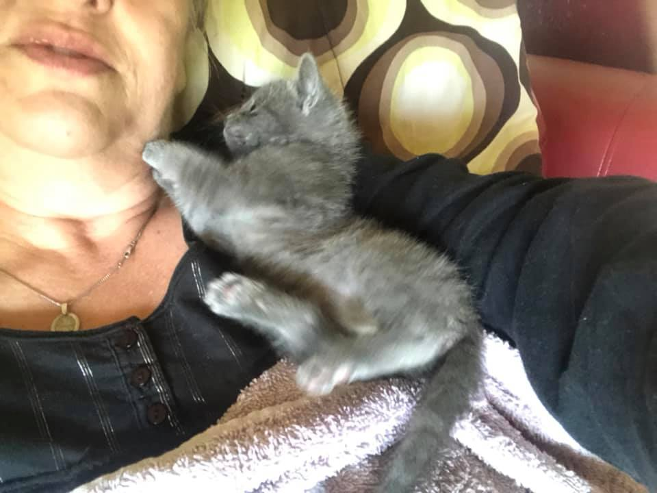Mom got there yesterday when Una needed feeding. Mom likes the way she grabs the bottle to hold onto it.