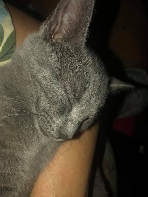 Misty and I were just doing our own thing but then Misty got tired. I did too but I go to the top of the cat tree, Misty however goes to mom. She is always trying to steal the show.